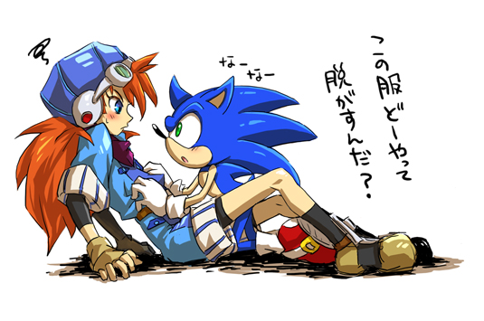 ソニックはジャスティンの服の構造が気になるご様子^p^
